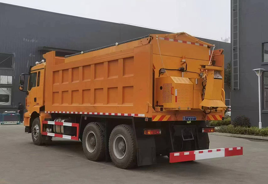 上裝配置 | 箱體采用優(yōu)質(zhì)碳鋼板,標(biāo)配10立方撒布機(jī)也可以選裝12立方,不銹鋼撒布機(jī)甩盤,撒布盤直徑550mm,撒布機(jī)采用 V 型料倉(cāng),結(jié)構(gòu)簡(jiǎn)單可靠,使融雪劑自動(dòng)落料,出料完全,無(wú)殘留,箭頭燈、篷布、過濾網(wǎng)、后爬梯。加裝3.5米雪鏟,可切換3.5米除雪滾刷(滾刷可選自帶動(dòng)力或者液壓取力)。 |